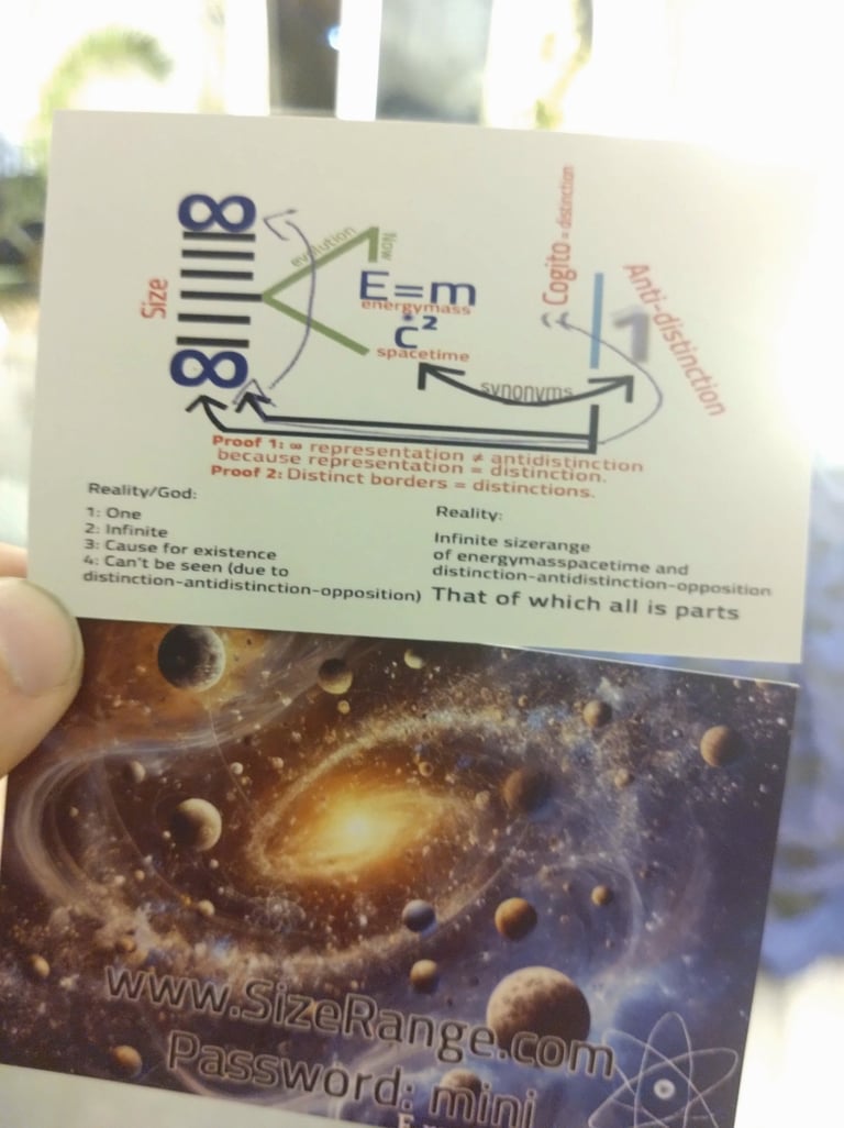 Cogito -> E=mc² -> Energymasspacetime -> AntiDistinction -> ∞Sizerange